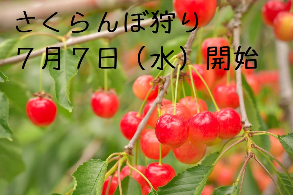 「さくらんぼ狩り(時間無制限食べ放題」は、7月7日(水)よりはじまりました。