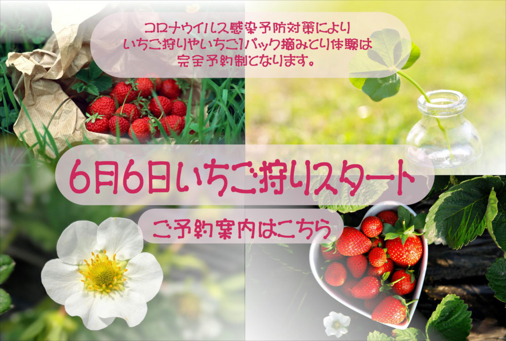 2020.5.31 【予約制】いちご狩りと いちご摘みとり体験は6月6日からスタートです。